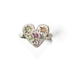 Sterling Silver Stargazer Heart Ring with 6 stones: Peach Moonstone, Topaz, Peridot, Pink Amethyst, Lemon Quartz and Tourmaline.